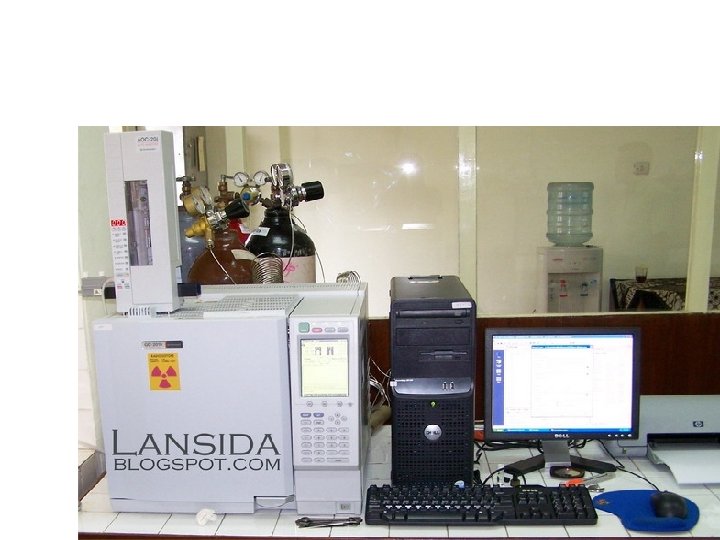 Electron Capture Detector (E. C. D. ) • Nitrogen sebagai gas pembawa mengalir melalui detektor dan terionisasi oleh sumber elektron biasanya tritum yang teradsorbsi pada Titanium atau Scandium (Ti. H 3, Sc. H 3) atau Nickel 63 (Ni 63). • Nitrogen terionisasi akan membentuk arus antar elektroda-elektroda.