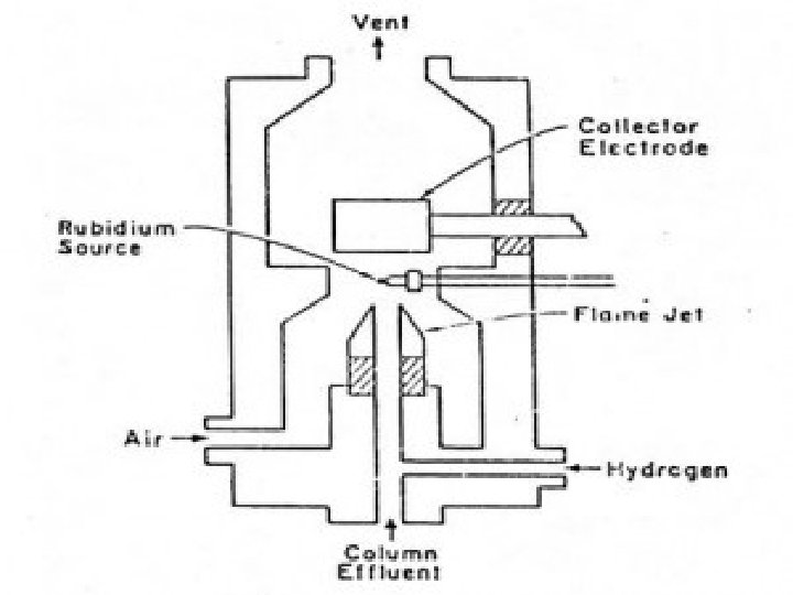 Flame Ionization Detector (F. I. D. ) • Pada F. I. D, sumber ionisasi adalah pembakaran biasanya berasal dari hidrogen dan udara atau oksigen. • FID ini sempurna dan mungkin merupakan detektor yang paling banyak digunakan. Bersifat sensitif dan digunakan secara ekstensif dengan kolom kapiler. • FID akan memberi respon hanya terhadap senyawa organik, tidak pada udara atau air atau gas ringan yang telah ditetapkan. • Pada senyawa-senyawa organik, selektivitas sangat kecil.