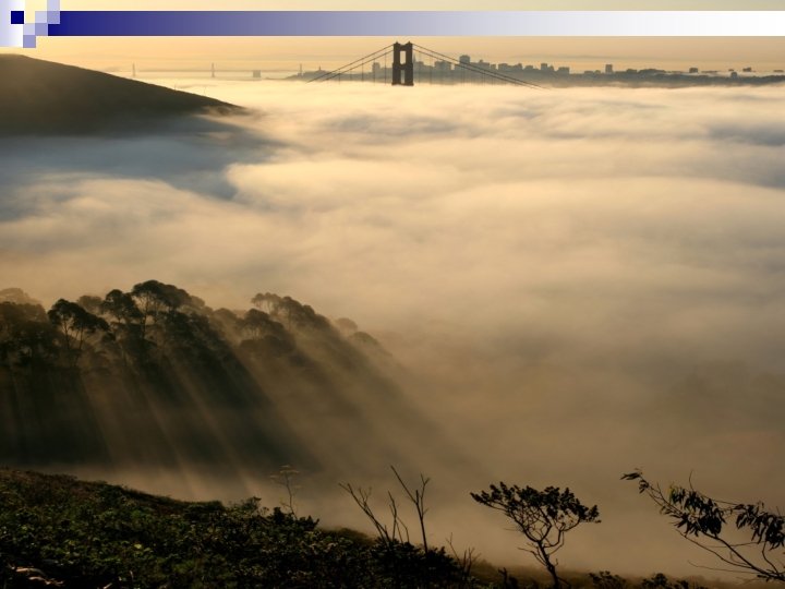 Magla nastaje kondenzacijom vodene pare u prizemnom sloju vazduha koja dovodi do n Sastav magle zamućenosti atmosfere i smanjenja vidljivosti na 1 km ¨ vodene kapljice na temperaturi većoj od 0 o. C ¨ prehlađene kapljice vode na temperaturi manjoj od 0 o. C ¨ ledeni kristali na temperaturi manjoj od -10 o. C n Način postanka: ¨ magle vazdušnih masa ¨ frontalne magle n Vrste magli ¨ ¨ ¨ radijacione magle isparavanja advektivne gradske magle čađevine n Advektivne magle nastaju pri vetru čija brzina nije veća od 10 m/s i koji nanosi topao i n Radijacione magle – pri hlađenju zemljine površine i vazduha koji na nju naleže dolazi do vlažan vazduh na hladnu površinu hlađenja vazduha do tačke rose. Vidljivost je 150 -500 m, nastaje noću i u zoru, a nestaje 10 -11 h