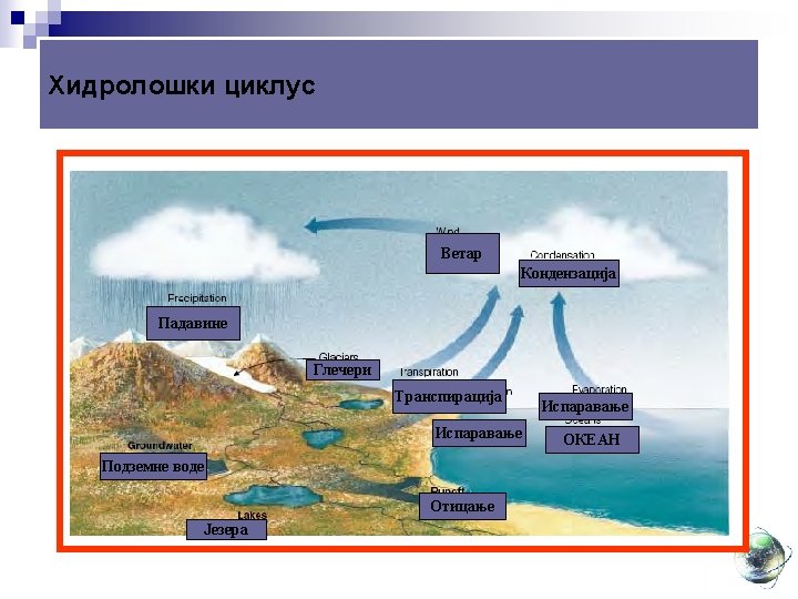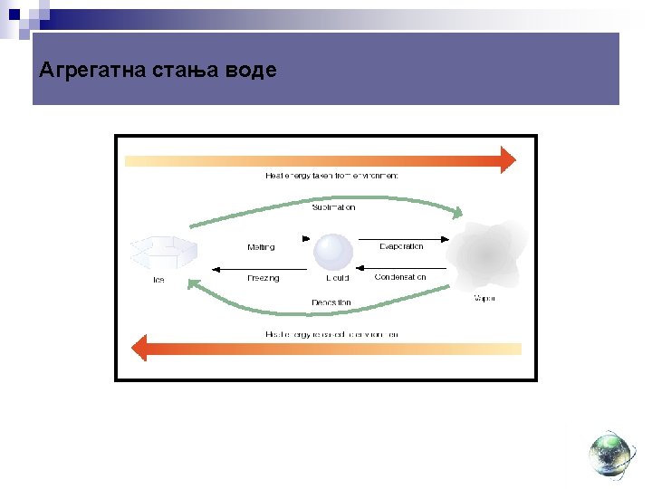 Kruženje vode u prirodi n Faze u kruženju vode. Topljenje, isparavanje, kondenzacija, sublimacija. Latentna toplota. n Vodena para se u atmosferi transportuje molekularnom difuzijom i turbulentnim transportom (konvekcijom) n Za potrebe određivanja vodnog bilansa, isparavanje sa velikih površina se izračunava pomoću neke od empirijskih formula ili iz jednačine energetskog bilansa n Pritisak vodene pare. Ako se ovaj element izračuna, na osnovu njega mogu da se izračunaju i svi drugi elementi vlažnosti vazduha.