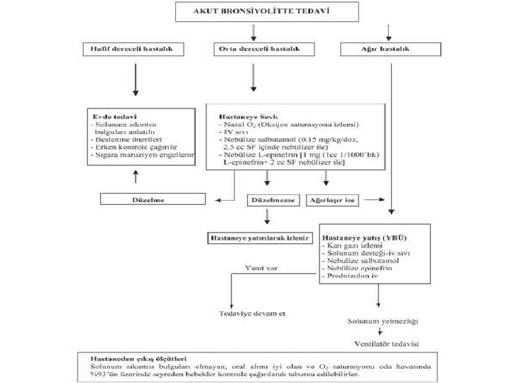 Hastaneye sevk endikasyonları • Orta – ağır bronşiolitler • Gestasyonun 34. haftasından önce doğup, 1 yaşın altında olanlar • 3 aylıktan küçük bebekler