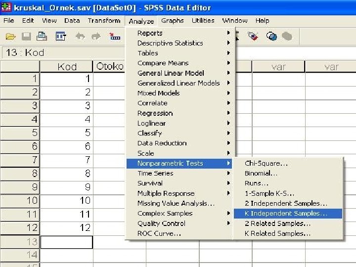 KRUSKAL WALLİS-H TESTİ §. SPSS ile yapalım 19