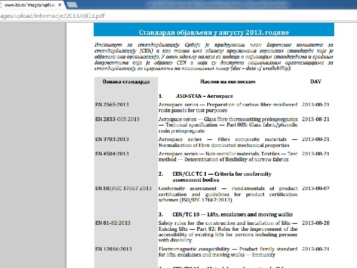 • ISS je pridruženi član CEN/CENELEC • ISS komisije – imaju status posmatrača /observer members • SRPS EN se objavljuju kao identični EN standardima (obaveza povlačenja konfliktnih standarda) • Izvorni nationalni standardi – podležu procedurama mirovanja (standstill) i notificacije