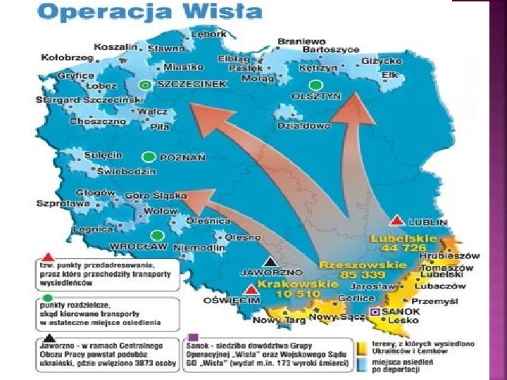 W ramach operacji „Wisła” 30 000 -35 000 Łemków wysiedlono głównie w okolice Wrocławia, Zielonej Góry, Opola, Legnicy, Gorzowa, oraz Olsztyna i Koszalina. P. Przybylski, Rola duchowieństwa greckokatolickiego w kształtowaniu…op. cit. , s. 199.