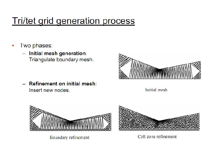 Tri/Tet Methods Octree Advancing Front Delaunay http: //cubit. sandia. gov/ http: //www. simulog. fr/mesh/gener 2. htm
