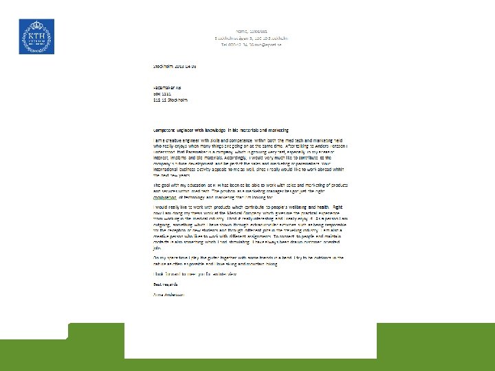 Extra workshop: CV café Thursday Nov 26 12. 00 -13. 30 – flexible time Location: KTH Entré, Drottning Kristinas väg 4 Bring a copy of your CV