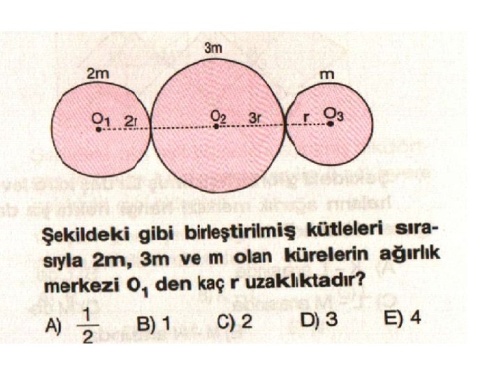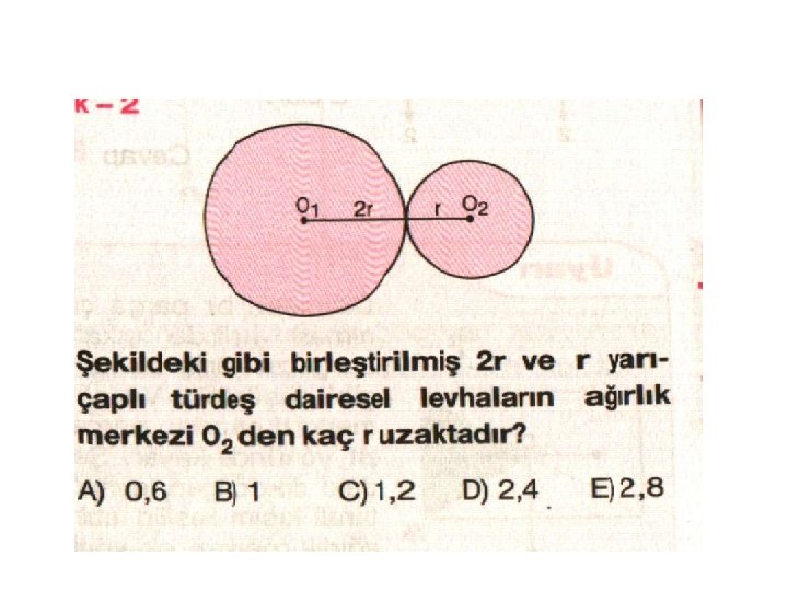 3. ÇEMBER-DAİRE-KÜRE: Ağırlık merkezi geometrik merkezleridir. Ağırlık verilmemişse, Çember için çevre 2πr, Daire için , Küre için kullanılır. Cismin ağırlık merkezi cismin üzerinde olmayabilir. (çember)