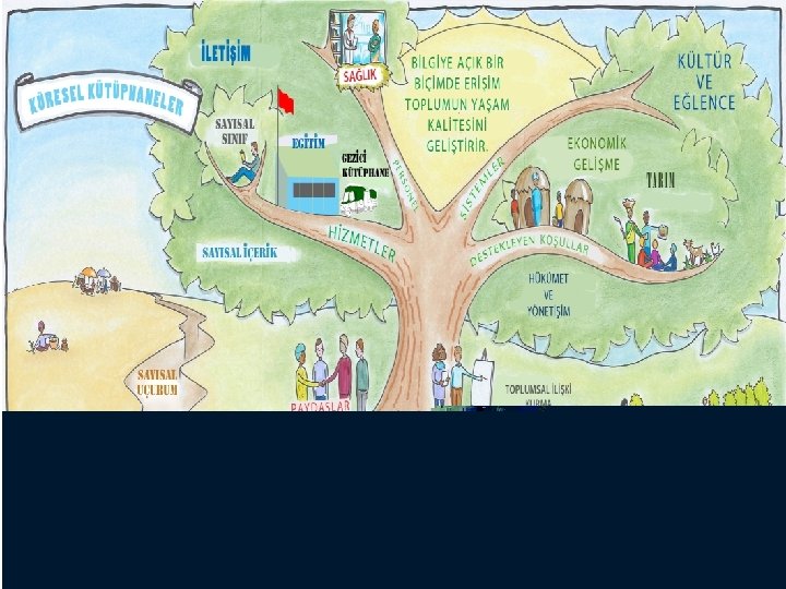Kütüphan-e Türkiye Projesi Küresel Kütüphaneler Girişimi Nedir? • “ekonomik, eğitimsel, sağlık alanındaki, ve sosyal fırsatlar gün geçtikçe internet erişimine bağlı olmaktadır, ” • “az erişim az fırsat demek, ” ve bu da Dijital Uçurum oluşturmaktadır • Dünya nüfusunun %65’i internete bağlı bir bilgisayara erişim olanağına sahip değildir. Kaynak: www. gatesfoundation. org