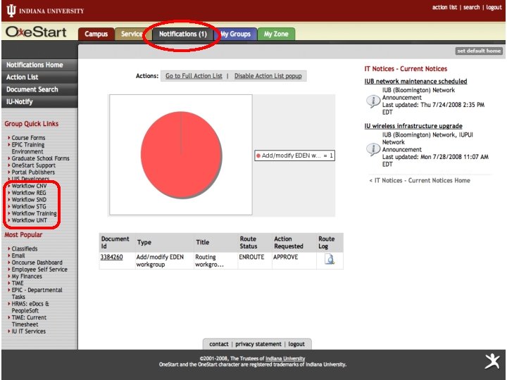 Action List Counter • On the “Notifications” tab there is a counter which indicates the number of items in the user’s Action List • We created a simple standalone application which provides this service • Onestart portal uses Ajax to connect and read value • Will also pop-up a message to the user when items enter their Action List