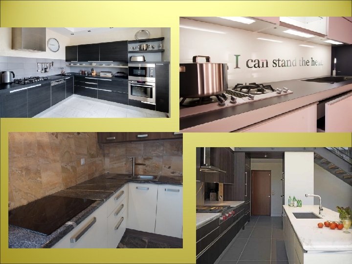 • pod kuhinje treba biti vodonepropustan i lak za održavanje • najbolje su keramičke pločice, koje se mogu izvesti u različitim bojama, oblicima i dimenzijama • vertikalne plohe zidova u sklopu kuhinje također trebaju biti izvedene od materijala lakih za čišćenje • za ugodan vizualni doživljaj kuhinje, kombinirajte maksimalno tri različita materijala ili boje.