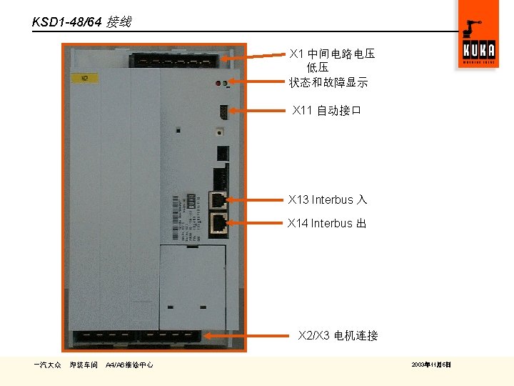 KUKA KSD 1 48 KSD 1 64 KSD Slides: 6 Download presentation KUKA 伺服驱动器 KSD 1 -48 KSD 1 -64 KSD 1 -08 KSD 1 -16 KSD 1 -32 一汽大众 焊装车间 A 4/A 6维修中心 2003年 11月5日
