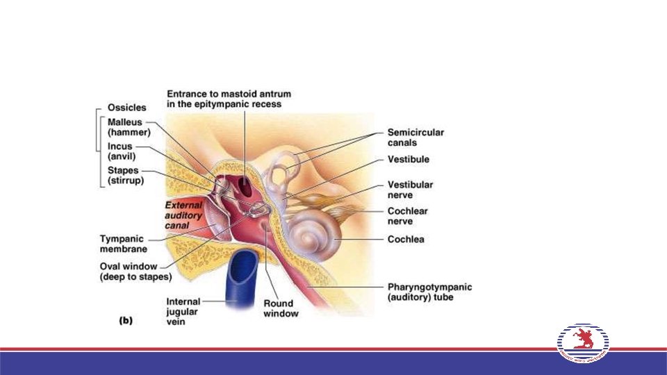 Anterior semicircular canal Ampulla (superior canal) Ampulla (lateral canal) Sacculus Lateral canal Utricule Cochlear duct Helicotrema Oval window Posterior canal Ampulla (posterior canal) Round window Vestibular duct (scala vestibuli) Tympanic duct (scala tympani)