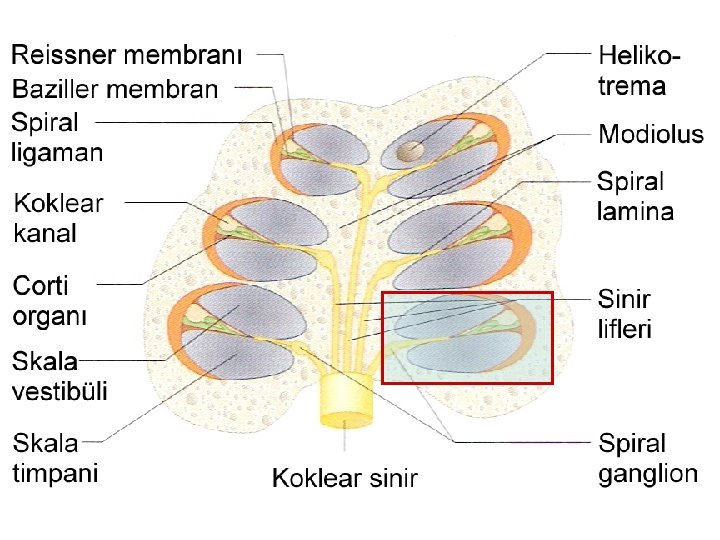 Membranöz labirent • Koklear kanal • Vestibüler labirent • Semisirküler kanallar • Utrikulus • Sakkulus Endolenfatik kese Endolenfatik kanal Koklear kanal Semisirküler kanallar Utrikulus Utrikulosakküler kanal Sakkulus Duktus reuniens