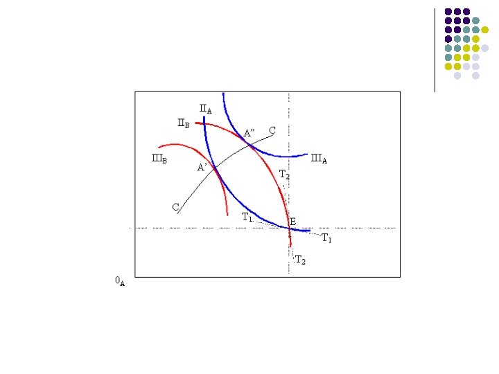 · Setiap titik di atas keluk kontrak menunjukkan kadar penggantian sut bagi barang X dan Y antara individu A dan B adalah sama MRSAXY = MRSBXY • Sebarang peralihan titik di sepanjang keluk kontrak menunjukkan seseorang individu tidak dapat meningkatkan kebajikannya tanpa mengurangkan kebajikan individu lain. l Sebagai contoh, peralihan D ke G menunjukkan individu A dapat meningkatkan kebajikan manakala individu B mengalami pengurangan dalam kebajikan.