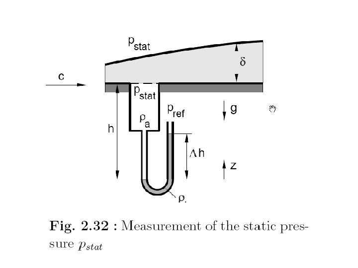 The value for the pressure drop p 2 – p 1 or Δp to Δh, the reading on the manometer: Δp = Δh(ρA-ρ)g Where: § ρA is the density of the fluid in the manometer § Δh is the manometer reading 32