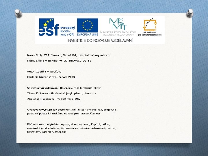 O http: //www. pantheon. org/areas/gallery/mythology/africa/egy O O O ptian/isis. html http: //www. herodotos. sk/nabozenstvo-starovekeho-rima-ii/ http: //lukaspecka. blog. idnes. cz/c/190737/Architekt-v-Rime. IIcast-Tri-nadherna-namesti. html http: //typomil. com/typofilos/2007/01/normalizovane-skolnipismo/ http: //www. detskestranky. cz/clanek/1491 pexeso_rimske_cislice. htm http: //vo. decoupageshop. cz/cz-detail-125960 -hodinovycifernik-rimske-cislice-22 cm-1 ks. html V. Válková: Dějepis 6, Pravěk a starověk, SPN Praha 2006