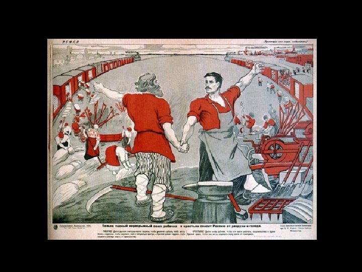 Stalinisme – socialistisch realisme § Als Stalin in 1928 -29 in het communistisch Rusland aan de macht komt maakt hij een einde aan alles wat modern is. Dit geldt voor alle kunstvormen. Er moest een eind komen aan de kunstzinnige experimenten die kort voor en na de Oktoberrevolutie van 1917 populair waren (zoals het constructivisme). Kunstenaars moeten begrijpelijke en realistische kunst maken. De arbeidersklasse zal de kunst pas begrijpen als de vormgeving realistisch is. § Het socialistisch realisme is vanaf nu de enige acceptabele kunstvorm.