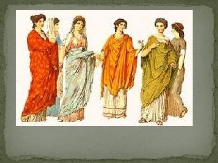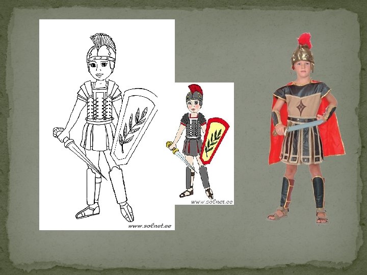 Vana-Rooma kostüüm Esteetiline iluideaal �Kreeka iluideaal oli ilus keha ja proportsioonide harmoonia. �Vanad roomlased olid tugevad ja jõulised sõdalased. See oli nende iluideaal. �Kreeklannad ja roomlannad olid paljus sarnased.