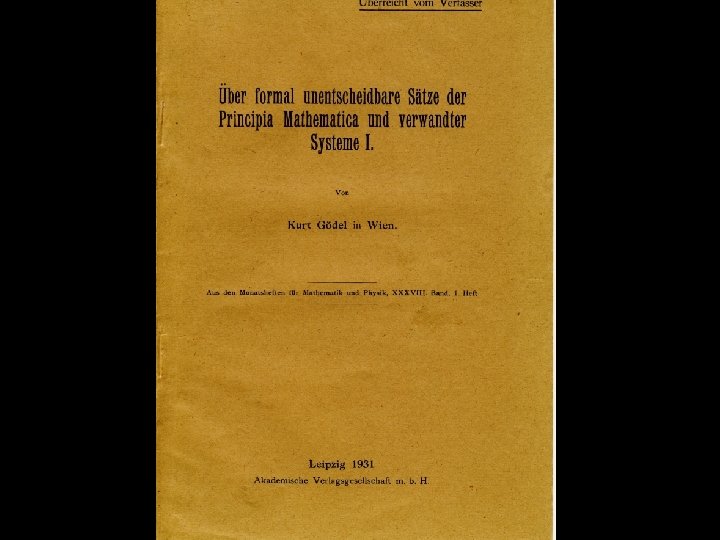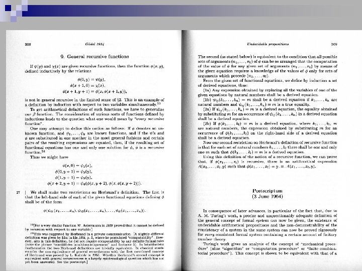 Works by Gödel of special relevance to computer science 1. 2. 3. 4. Completeness of first-order logic (1930) Incompleteness of formal number theory (1931) Papers on decision problems (1932– 33) Definition of the notion of general recur -sive function (IAS lectures, 1934; first published 1965)