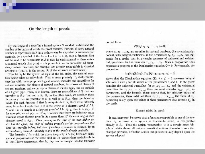 Gödel’s Prescience (II) Gödel did not pursue the ideas in his lengthof-proof paper, which