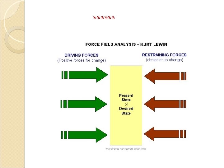 Odmrzavanje i motivisanje za promenu…. …je vaganje ZA I PROTIV i , - odlucivanje u pravcu ZA, razlozi ZA treba da premase razloge PROTIV pre nego sto krene akcija �ANALIZA SNAGE POLJA � je nacin da se iskaze da je izvestan broj faktora ZA, - a izvestan broj PROTIV, � ako pretegnu faktori ZA nad faktorima PROTIV napravice se promena Ako se to ne dogodi, znaci da je mala motivacija za promenu i tada pojedinac postaje razdrazljiv i zaglavljen u svom ropstvu, � Prva faza unutar faze odmrzavanja obuhvata pomeranje sebe. grupe, odeljenja ili sireg okruzenja prema motivaciji za promenu �