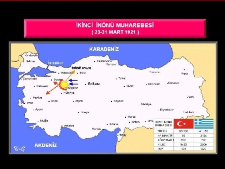 BATI CEPHESİ II. İnönü Savaşı (23 Mart - 1 Nisan 1921): Sonuçları: • İtalya, Anadolu'daki birliklerini çekmeye başlamıştır. • Fransa, ateşkes için görüşmelere başlamıştır. • Halkın TBMM'ye olan güveni artmıştır.