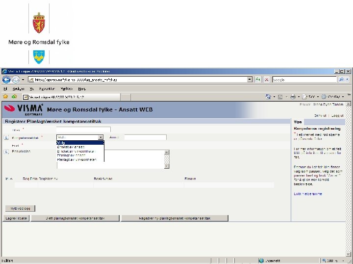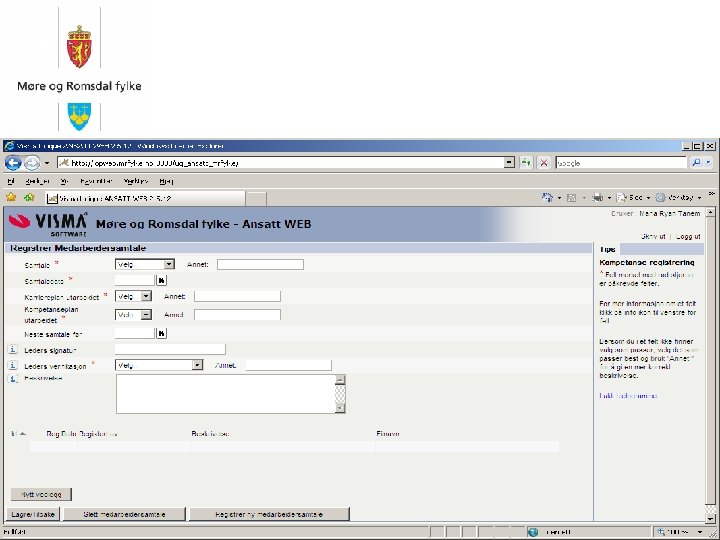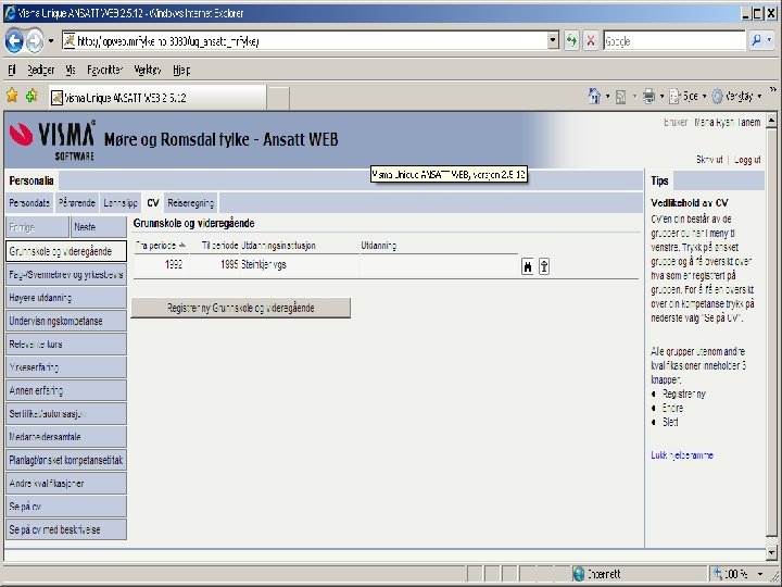 • Visma Unique • • Utvikling av kompetansekategoriar. Utstrakt bruk av førehandsdefinerte val. Formal- og realkompetanse skal bli registrert. Enkelt for brukaren.