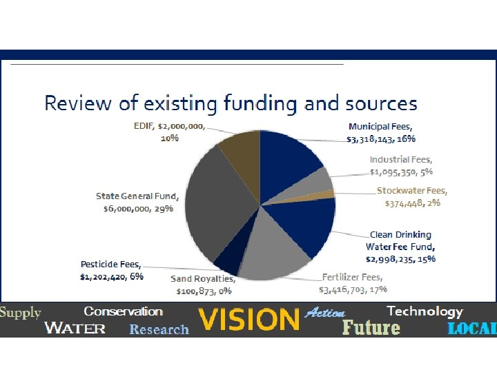 BRFTF Recommendations • 0. 1 % of the current statewide sales tax • Maintain existing fees • Until sales tax revenue is available, restore SGF and EDIF transfers to State Water Plan Fund