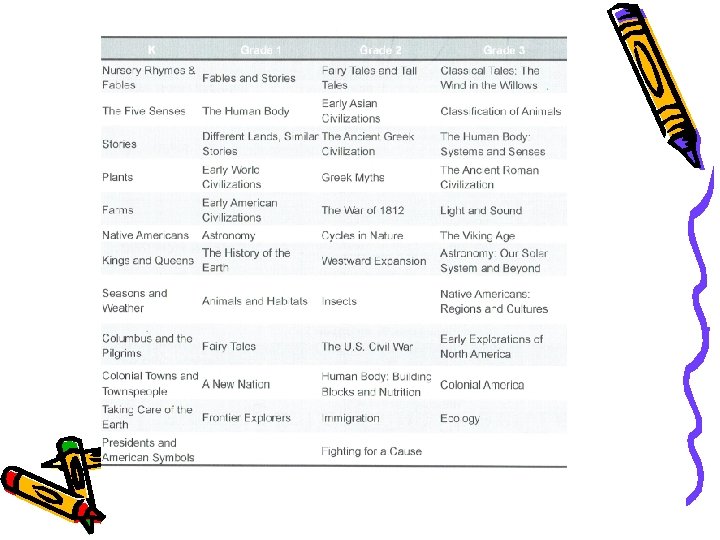 • Core Knowledge is aligned to Common Core Reading Standards – – • • • Comprehension of Literary and Informational Text Writing narrative, informational and opinion pieces Listening & Speaking Skills Language/Vocabulary. Each new domain or topic of study within your child’s grade level will build on knowledge gained from their previous learning. cohesive and broad knowledge of social studies, science, health and cultural literacy (see next slide). A parent letter will be sent home at the beginning of each Domain explaining the focused topic of study.