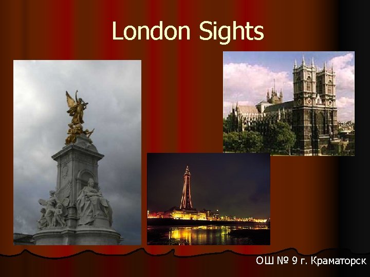 3. What sight of London is it? l l 1. The official residence of the Queen: • Westminster Abbey • The Houses of Parliament • Buckingham Palace l l 2. • • • The seat of the Government: the Tower the Houses of Parliament Buckingham Palace l l 3. • • • A symbol of English tradition: Westminster Abbey The Tower The London Eye