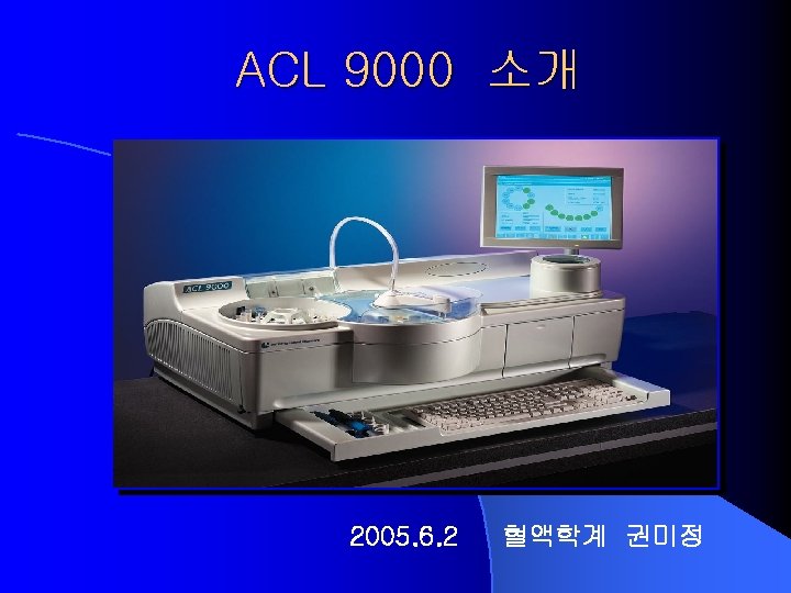 ACL 9000 주요특징 True random access § Nephelometric method & Chromogenic method § Stat 검사 가능 § Rotor 전자동 이송장치 § LCD touch screen §