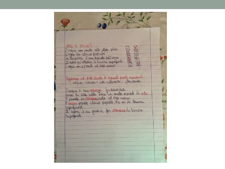 Invitiamo l’alunno ad esporre prima oralmente e poi per iscritto quanto ha visionato e poi rifatto personalmente in modo da effettuare una verifica in itinere.