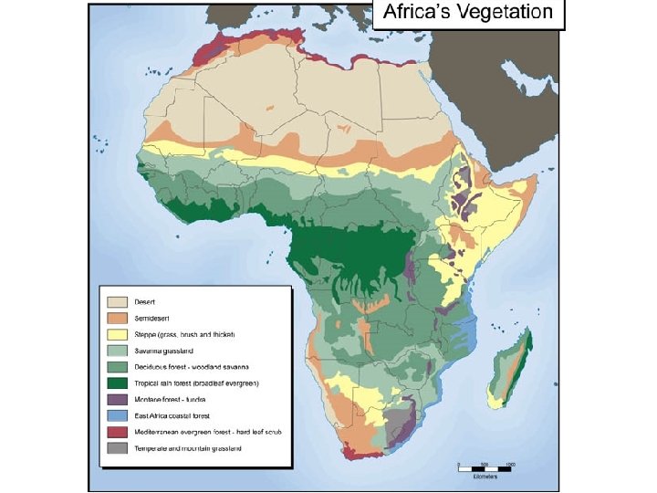 Posizione geografica Canale di Suez Tropico del cancro Equatore Tropico del capricorno L’africa è attraversata dall’equatore ed quasi tutta compresa nella fascia tropicale. Con la costruzione, nel secolo scorso, del Canale di Suez, è diventata una gigantesca isola bagnata a Nord dal Mar Mediterraneo, a Ovest dall’Oceano Atlantico, a Est dall’Oceano Indiano e dal Mar Rosso.