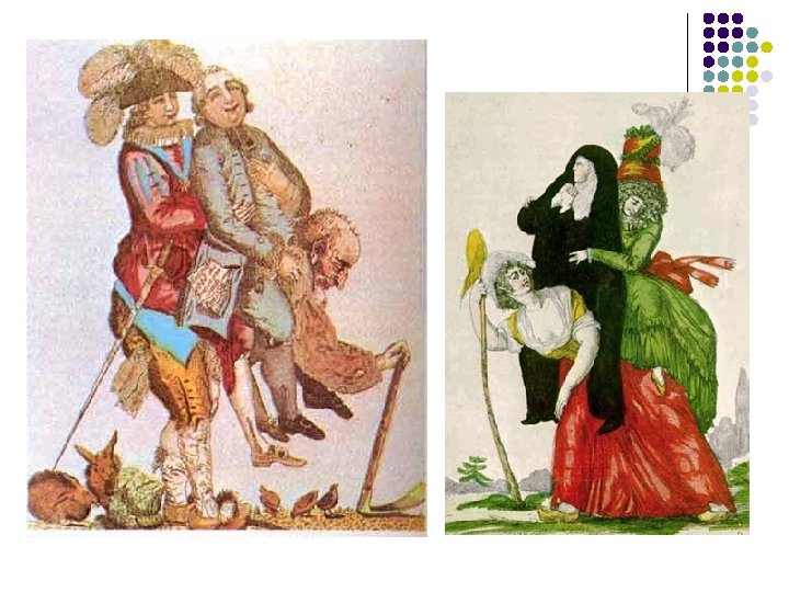 Societat estamental No privilegiats: 3 r Estat o Poble pla Privilegiats (una minoria) Noblesa: Propietaria de les terres Exentes de pagar impostos Ostenten càrrecs públics Privilegis jurídics i socials (2%-3% de la població) Noblesa de Cort Noblesa de províncies Nobleza de toga (la majoria) Burgesia: Clergat: Riquesa patrimonial Poder ideològic Prestigi social (1% de la població) Propietaris de negocis i terres Camperols: són la majoria (90%- 95%) Alt clergat Baix clergat: Artesans: organitzats en gremis Grups marginals