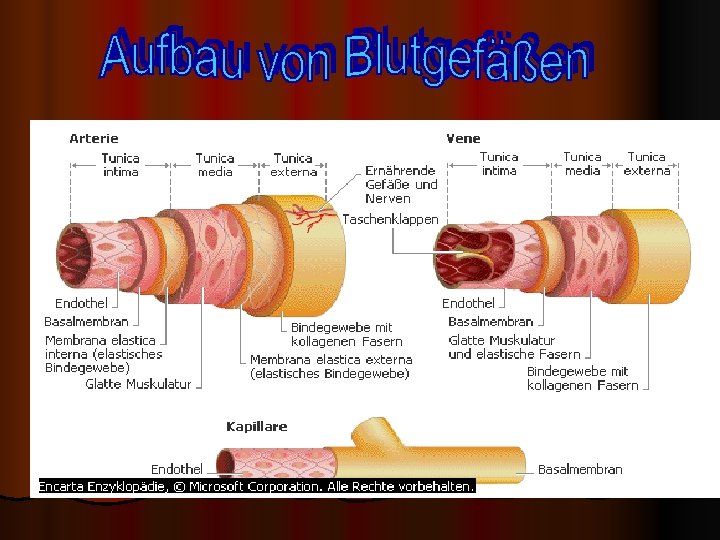 l Das Blut in den Arterien enthält meist viel Sauerstoff. Die Arterien verzweigen sich im Körper immer weiter und werden zu Kapillaren. Man sagt zu den Kapillaren auch Haargefäße, weil diese Blutgefäße ganz dünn sind. In den Kapillaren wird der Sauerstoff an die Gewebe abgegeben, und das sauerstoffarme Blut fließt zurück zum Herz und dann zur Lunge.