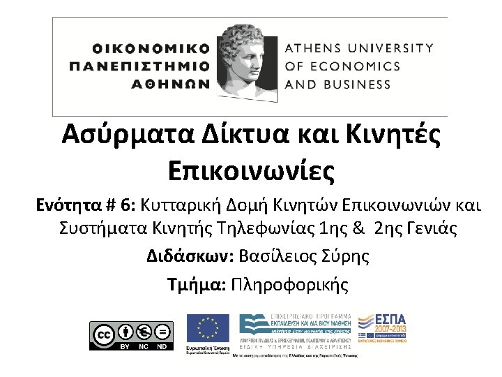Κυτταρική Δομή Κινητών Επικοινωνιών l l l Mobile Communications Principles Early Mobile Telephone System Architecture Co-channel Interference and Frequency Reuse The Cellular Concept Cellular System Architecture Frequency Reuse Cell Splitting Handoff Initiation Cellular System Components Digital Cellular Time Division Multiple Access (TDMA)
