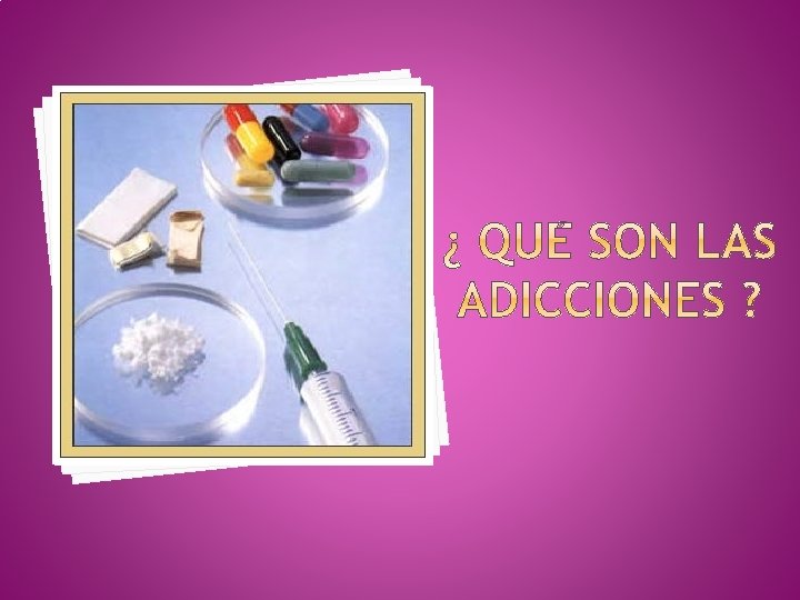 Puede presentarse adicción tanto a sustancias psicotrópicas como a actividades e incluso, en relaciones de pareja Sustancias psicotrópicas: incluyendo alcohol, nicotina y otras drogas Comida o componentes comestibles tales como el azúcar o la grasa Juegos de azar