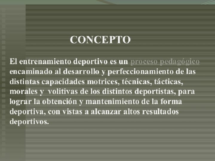 MAGNITUD DE LA CARGA Ø Volumen de la carga: Cantidad de trabajo de entrenamiento a realizar. Ø Volumen de entrenamiento: Cantidad total de carga que realiza un deportista en una sesión. Ø Volumen total de la carga: Cantidad de trabajo de entrenamiento realizado durante una sesión, micro, meso, etapa, periodo o macro.