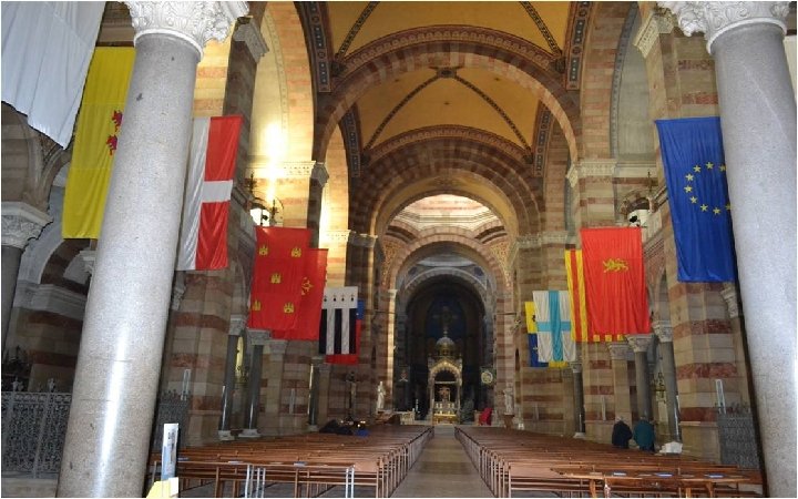 • La Cathédrale de la Major a une longueur de 142 mètres, les tours du portique ont 60 m de haut. • La nef s’élève à 20 mètres, la coupole centrale culmine à 70 mètres pour un diamètre de 17, 70 m, ce qui en fait la sixième au monde. • Elle est classée monument historique le 9 Août 1906. • Cette cathédrale est toute en marbre et Porphyre de Carrare • Et en Onyx de Tunis. • • Les portes des chapelles latérales sont en bronze et en marbre blanc. Les lustres sont tous différents, je ne vous en présente que deux ! • Maintenant , on visite ! On admire …