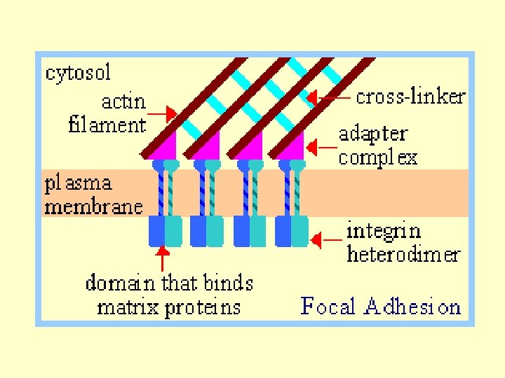 LE INTEGRINE Le integrine interagiscono con i componenti della ECM tramite i loro domini extracellulari, mentre i loro domini citoplasmatici giocano un ruolo fondamentale nel mediare le funzioni cellulari. Infatti , le code citoplasmatiche delle integrine interagiscono con il citoscheletro, con molecole di segnale e altre proteine cellulari, risultando nella regolazione di molte funzioni biologiche. MATRICE INTEGRINE CITOSCHELETRO