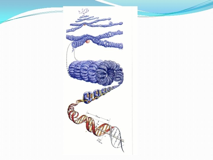 DNA e le sue forme Nel nucleo osservato al microscopio si osserva una sostanza colorate (da varie sostanze chimiche) alla quale si da il nome di cromatina: questa sostanza è il DNA. Quando la cellula in procinto di dividersi il DNA assume un’altra forma, infatti si condensa e organizza in strutture facilmente visibili al microscopio: i cromosomi (a forma di bastoncello). Sui cromosomi si trovano i geni ossia frammenti di DNA che dirigono la fabbricazione delle proteine.