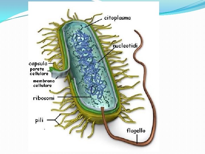 Cellule procarioti Le cellule viste fin qui sono chiamate cellule eucarioti (eterotrofe le animali e autotrofe le vegetali). Sono caratterizzate dalla presenza di un nucleo rivestito da una membrana nucleare. Ci sono però anche delle cellule che non hanno membrana nucleare e sono caratterizzate dalla presenza di un solo cromosoma, spesso a forma circolare immerso nel citoplasma cellulare. Queste cellule si chiamano procarioti. Solo le cellule caratteristiche di molti organismi unicellulari (batteri, ma anche altri).