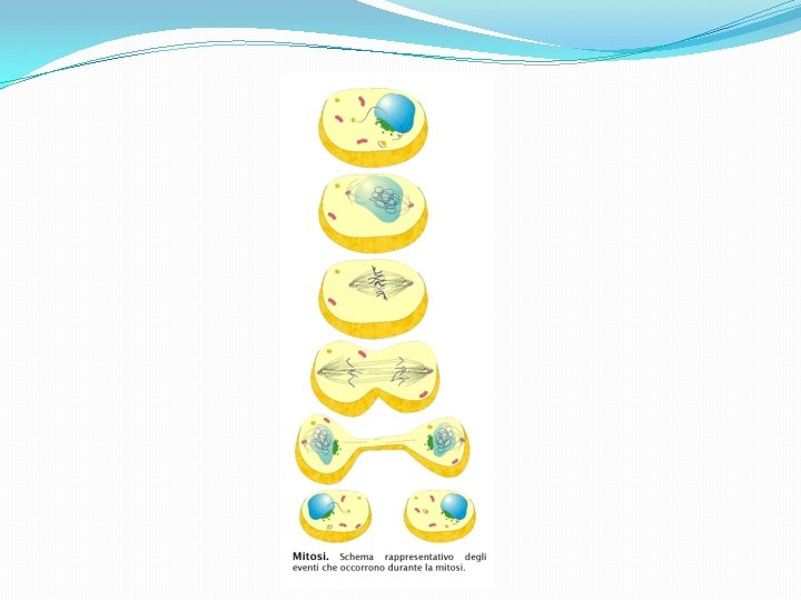È possibile descrivere la vita di una cellula in due fasi principali: �Interfase: stadio più variabile nel tempo, dove la cellula svolge le sue attività vitali, cresce di dimensione e raddoppia il suo patrimonio genetico (DNA); �Mitosi: la cellula si divide in due cellule identiche, contenenti nel nucleo lo stesso patrimonio genetico della madre.