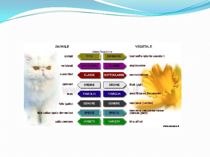 La classificazione è oggi una specifica branca della biologia, chiamata sistematica. La sistematica utilizza sette raggruppamenti o categorie sistematiche, che ordinate in senso gerarchico dalla più piccola alla più grande sono: � Specie: categoria fondamentale e primo gradino della classificazione dei viventi. La specie è un insieme di organismi che possono riprodursi tra loro generando una prole fertile. � Genere: raggruppamento di specie simili tra loro; per esempio cane e lupo appartengono al genere Canis. � Famiglia: raggruppamento di generi simili tra loro. � Ordine: raggruppamento di famiglie simili tra loro. � Classe: raggruppamento di ordini simili tra loro. � Phylum o tipo: raggruppa diverse classi simili. � Regno: è la categoria sistematica più ampia e comprende più phyla.