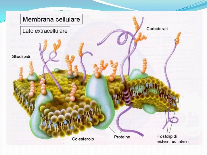 Dentro una cellula Le strutture principali di una cellula sono tre: �Membrana cellulare: svolge la funzione di protezione e regola lo scambio di sostanze con l’ambiente esterno; �Citoplasma: sostanza liquida nella quale sono immersi gli organelli (mitocondri, lisosomi, ribosomi i più importanti, strutture fondamentali per la funzionalità della cellula; �Nucleo: è la centrale operativa della cellula, diviso dal citoplasma da un’altra membrana, la membrana cellulare. Contiene gli acidi nucleici (DNA e RNA).