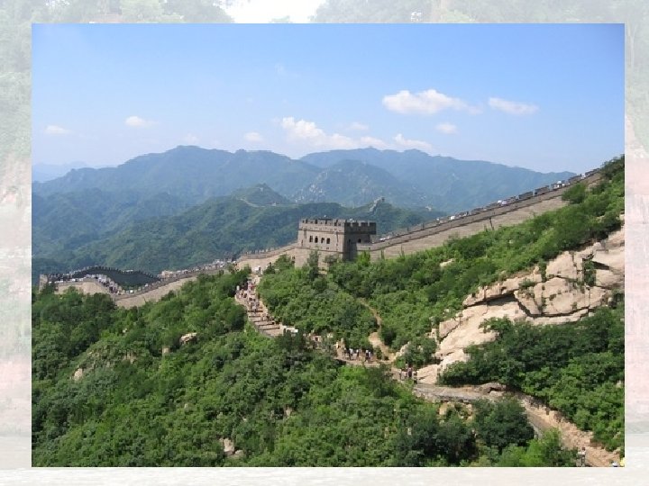 Commençons par la plus illustre. La Grande Muraille est un ensemble de fortifications militaires chinoises construites, détruites et reconstruites en plusieurs fois et à plusieurs endroits entre le IIIe siècle av. J. -C. et le XVIIe pour marquer et défendre la frontière nord de la Chine. C'est la structure architecturale la plus importante jamais construite par l’Homme à la fois en longueur, en surface et en masse. En moyenne, la muraille mesure 6 à 7 m de hauteur, et 4 à 5 m de largeur. En avril 2009, l'Administration d'État chargée du patrimoine culturel, ayant utilisé des technologies de mesure plus récentes, révise cette mesure et déclare une longueur de 8 851, 8 km. Ici, l’endroit le plus près de Pékin.