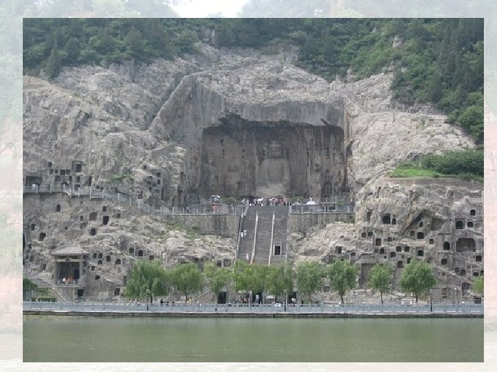 Les grottes de Longmen. Ces grottes bouddhistes ont été excavées dans le calcaire après 494 et, pour l'essentiel, jusqu'au Xe siècle. Elles sont densément présentes sur les deux côtés d'une gorge entre deux montagnes. La rivière Yihe qui s'écoule vers le nord y a creusé son lit. La gorge a servi de « porte » à la ville voisine. Pour cette raison, l'endroit était appelé Yique (porte de la rivière Yi). Du nord au sud, les grottes se succèdent sur environ un kilomètre.