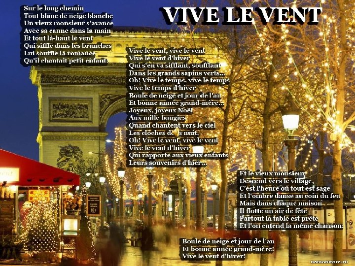 Аудирование A. J’ai recu beaucoup de cadeaux pour Noёl B. Je veux vous souhaiter une bonne sante. C. Nous avons reveillonne tous les deux ensemble tranquillement. D. La nuit de Noёl on revise l’annee precedente. E. Nous sommes alles a la messe de minuit. F. Nous avons decore le sapin de boules colorees et des guirlandes. G. J’ai regarde la messe a la tele Говорящий Утверждение 1 E 2 C 3 4 5