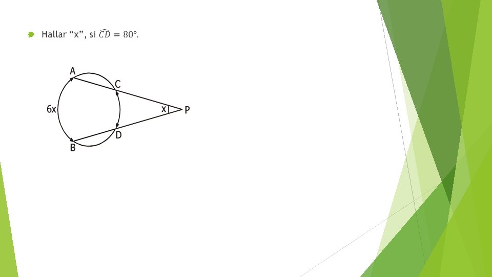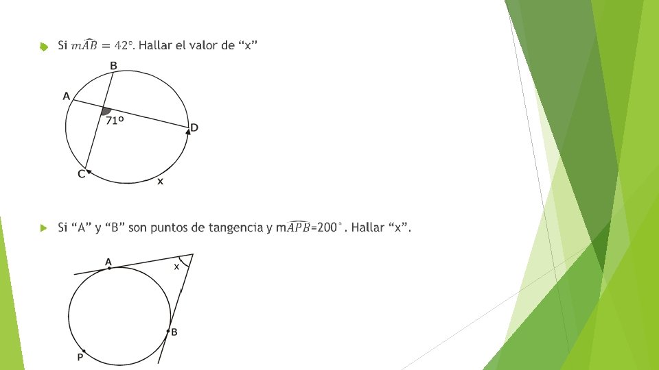 EJERCICIOS Calcular “PA”, si “A” y “B” son puntos de tangencia. En el gráfico, si: PT = 4 m y AB = 6 m, calcular “x°”. (“T”: punto de tangencia)