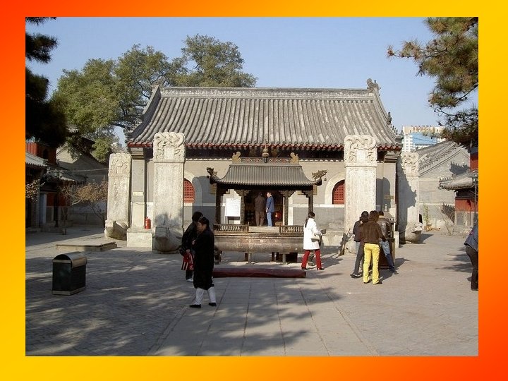 Le temple Fayuan est un temple bouddhiste construit en 645 et reconstruit au XIe siècle. Shichahai est un ensemble de 3 lacs situé dans la Cité impériale au nordouest de la Cité interdite. Kiosque des 5 dragons.